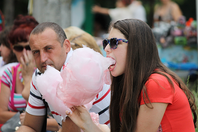 А присутствующие совмещали приятное с полезным — смотрели выступления и интенсивно поглощали сладкую вату и мороженое.