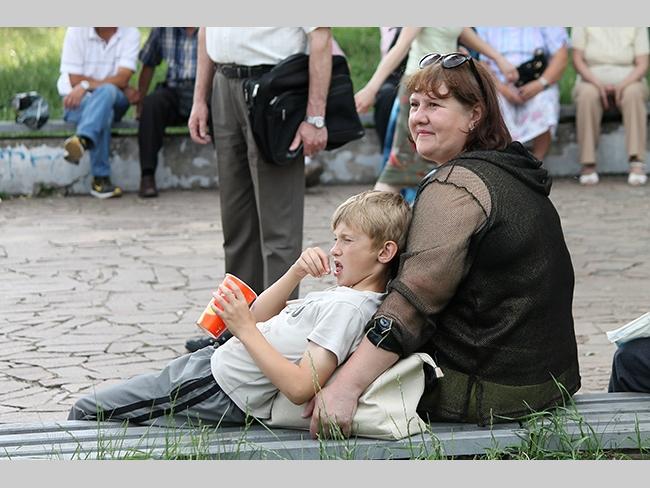 Зрителей на удивление было немного. То ли жаркая погода повлияла, то ли не успели еще из отдыха на природе вернуться (концерт начался в 16.00).
