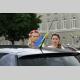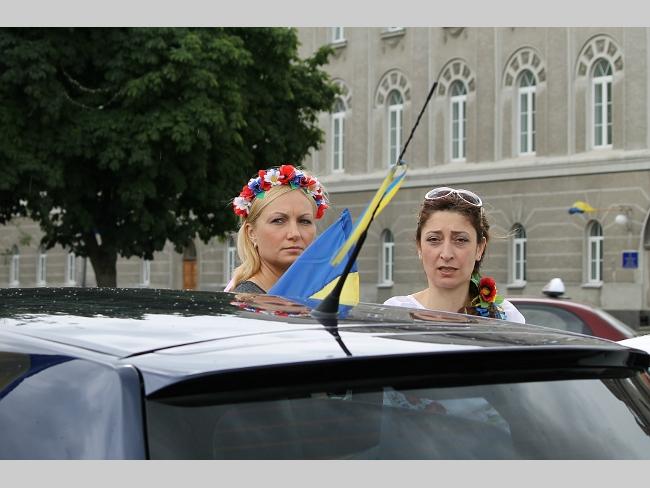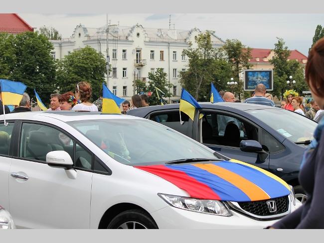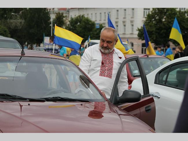 Около ста машин, украшенных национальной символикой, заполнили Красную площадь. Даже роскошный лимузин, если не ошибаюсь — единственный в нашем городе, вышел на старт этой акции. Он и возглавил колонну.