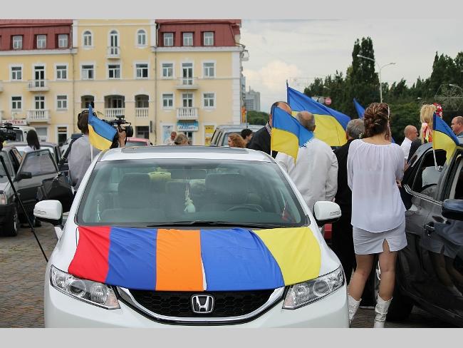 На капоте одной из машин соседствуют два флага: армянский и украинский. Ее владелица Люсете Карапетян: