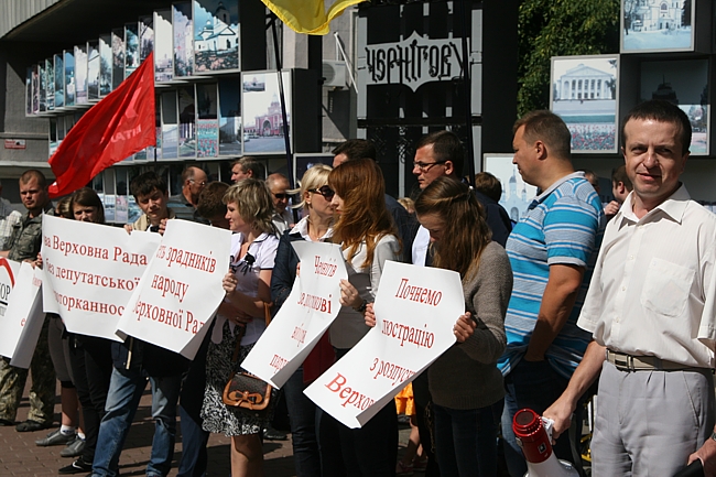 ПОЗИЦІЯ. Не дивлячись на те, що середа робочий день, під стінами міської ради зібрались представники громадськості. Чернігівці, що прийшли 2 липня на мітинг, який був анонсований партією «УДАР Віталія Кличка» вважають, що нинішній склад парламенту не здатний провести низку реформ та посилити національну безпеку нашої держави, і єдиним виходом з критичної ситуації для країни стануть дострокові перевибори Верховної Ради.