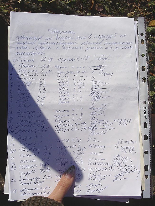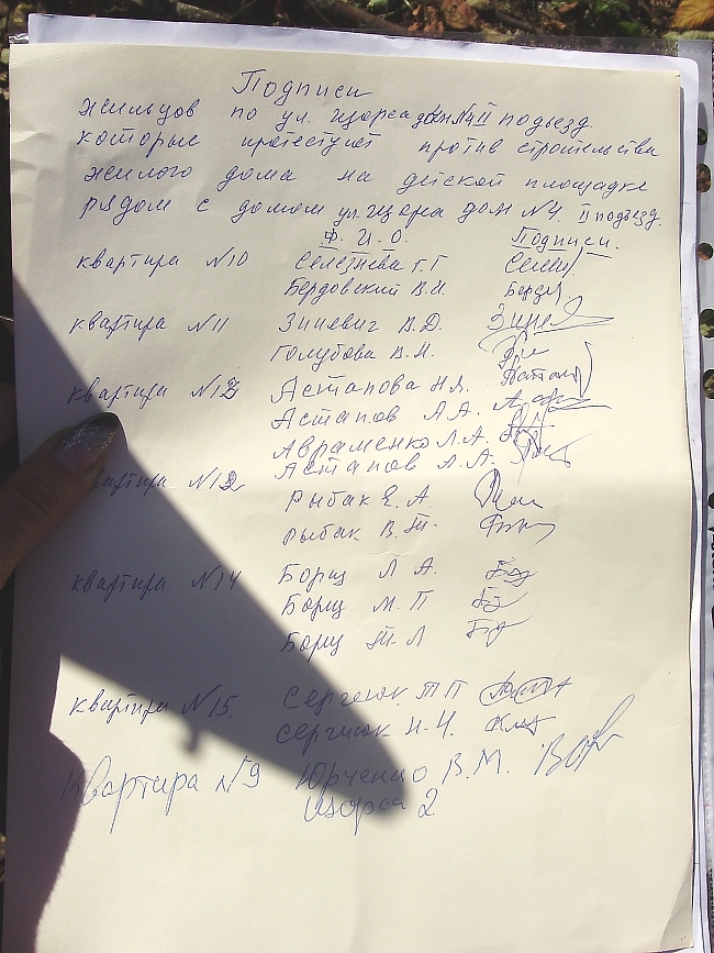 Подписи жильцов, которые против застройки двора