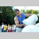 В упражнении «Чумаки», участники должны были перенести восемь мешков с солью по 50 кг и уложить их на телегу.