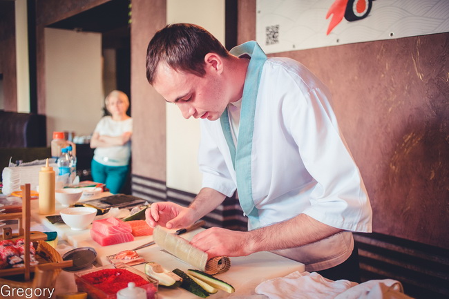 Мастер-класс по приготовлению суши проводили два опытных бойца – Сергей и Дима. Парни «крутят роллы» в суши-студии с самого ее основания. За эти восемь лет они накопили достаточно опыта, и теперь готовы делиться знаниями.