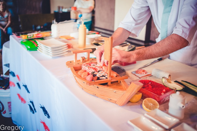 Наше «кулинарное занятие» началось с интересных исторических фактов о суши. Как оказалось, все-таки суши – это не японское блюдо. Да-да… свежевыловленную рыбу мелко нарезали и перекладывали слоями риса в Китае и Таиланде. Это было не что иное, как способ консервации и сохранения. Такая рыба могла храниться около года. Рис был просто абсорбентом, потом его выкидывали. А вот в пищу такой рис придумали употреблять уже японцы. Кстати, классические японские суши и сегодня «выдерживаются» по нескольку месяцев, а уже потом подаются в деревянных шкатулочках. Мы же с вами так полюбили более западный вариант суши. Скорее всего, суши с копченой, жаренной, соленой рыбой, сырами и мясом повергнут японца в легкий шок:). Там такого просто нет. Однако у нас сегодня азиатская кухня все больше и больше приобретает признаки фьюжн-кулинарии, высокой кухни, в ней много эксперимента, зачастую – удачного!