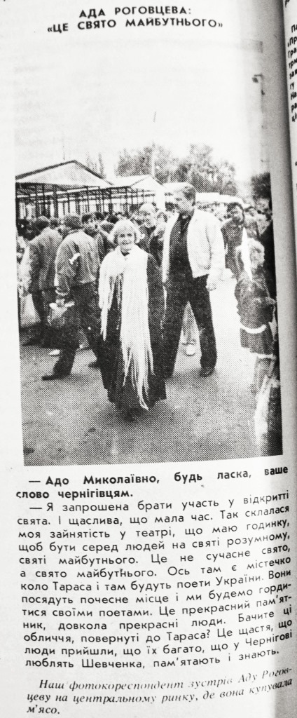Среди гостей, приглашенных на открытие праздника, было много и известных людей. Одну из таких гостьей – Аду Роговцеву, фотокорреспондент встретил прямо на Центральном рынке, куда известная актриса, пользуясь случаем, забежала купить мясо.