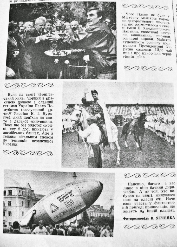 Накануне праздника в Чернигов стали прибывать гости со всех уголков Украины и бывшего Союза. Многие из них приехали, чтобы взять участие не только в торжественных мероприятиях, а и в массовом международном легкоатлетическом забеге с призовым фондом в 20 тысяч карбованцев, которые выделил черниговский филиал «Автовазбанка».