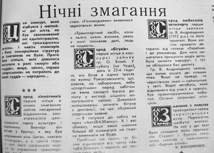 Учитывая отзывы, которые получила предыдущая наша статья, к написанию которой нас подтолкнуло желание познакомить (а для кого-то, просто освежить воспоминания) наших читателей с новейшей историей черниговского края и города Чернигова в частности, мы решили продолжить наш экскурс в недалекое прошлое. Мы снова заглянем в черниговские газеты 20-летней давности, на страницах которых, было собрано все самое интересное и актуальное, что происходило в жизни города и области.