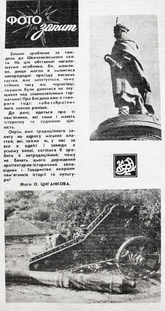 Ну а какими соображениями руководствовались те, кто сбрасывал с лафета тяжелую пушку, и лишили скульптуру Богдана Хмельницкого сабли, не известно. Также как и неизвестно имели ли эти варвары вообще способность к соображению.