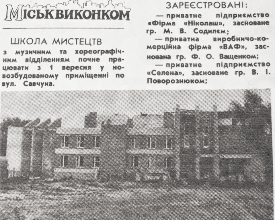 1 сентября того же года для детворы открыла свои двери и новая школа искусств с музыкальным и хореографическим отделениями, которые действуют и поныне в районе горсада.