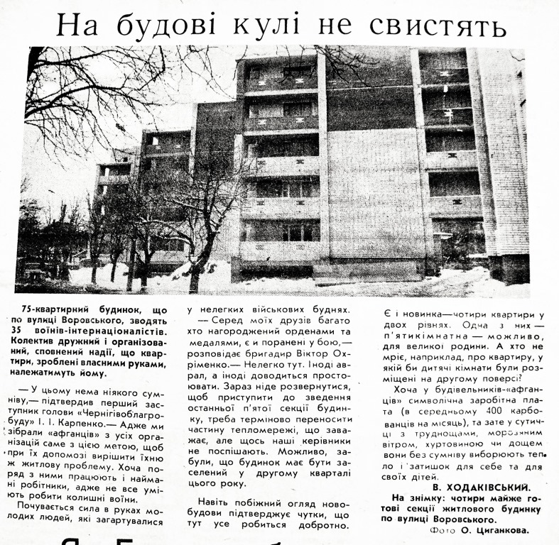 Среди жилищного строительства, выделялась своим нестандартным видом, группа жилых домов по улице Воровского, которые возводила бригада из 35 бывших воинов-афганцев. Новым веянием в жилищной архитектуре были двухуровневые квартиры - в каждом из домов в этих четырех секциях было по одной 4-х комнатной 2-уровневой квартире.
