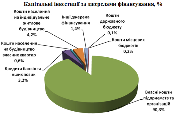 По-прежнему определяющую роль в структуре источников инвестирования играют собственные инвестиционные средства предприятий, формирующие 90,3% объема капитальных инвестиций. При этом уменьшилась доля средств, освоенных за счет привлеченных и заемных средств (кредиты банков и других займов), которая в общих объемах капитальных инвестиций составила 3,2%, против 6,3% в прошлогоднем периоде.