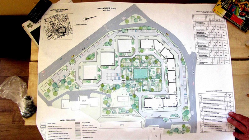 Общение с людьми, в том числе рядовыми работниками предприятия-застройщика, дало свой результат. Нам удалось найти генеральный план застройки (не путать с Генпланом Чернигова) и разобраться, что и как планируют строить на перекрестке проспекта Мира и Кольцевой.