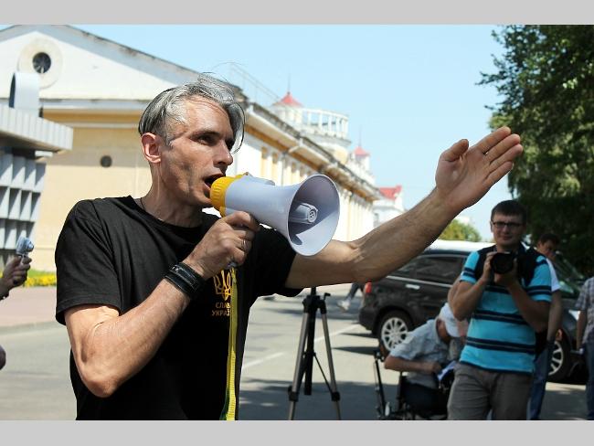 Активист пикета Станислав Тавлуй-бей Придеснянский, напомнил, как 25 ноября прошлого года, работниками милиции при поддержке работников ЖКХ был уничтожен черниговский Евромайдан. Непосредственно его уничтожением руководил заместитель начальника УМВД в Черниговской области полковник Эдуард Гребенюк, которого уже через месяц Янукович наградил боевым орденом Даниила Галицкого.