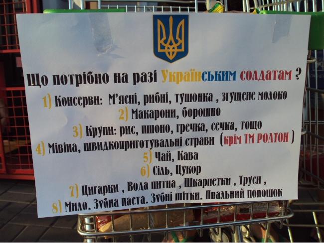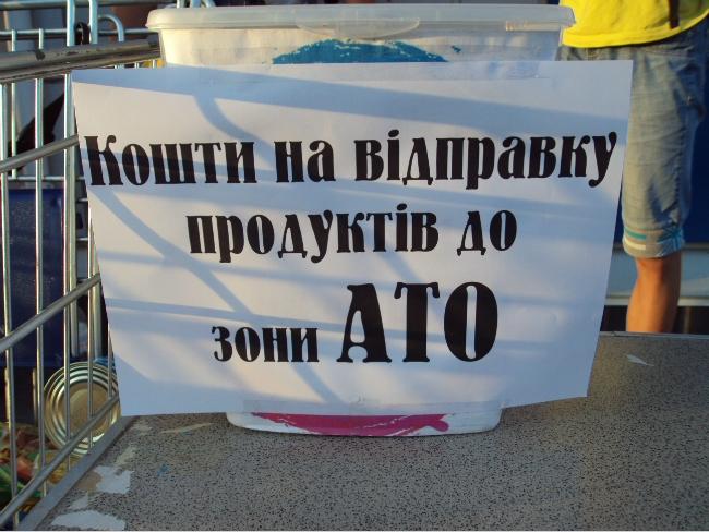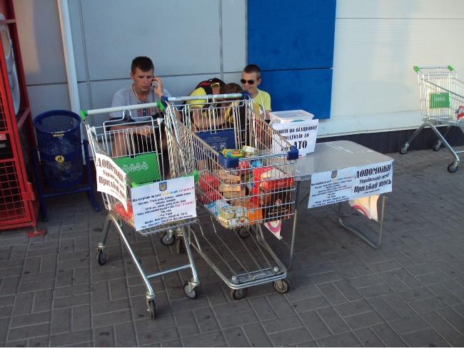 Вчера, 1 августа 2014 года общественные активисты собирали продукты украинским военным. Несколько часов, с 19.00 до 22.00 вечера они собирали гуманитарную помощь возле «Экомаркета» по ул. Кольцевая, недалеко от строительного гипермаркета "Эпицентр", а также возле центрального магазина «АТБ» по ул. Примакова.