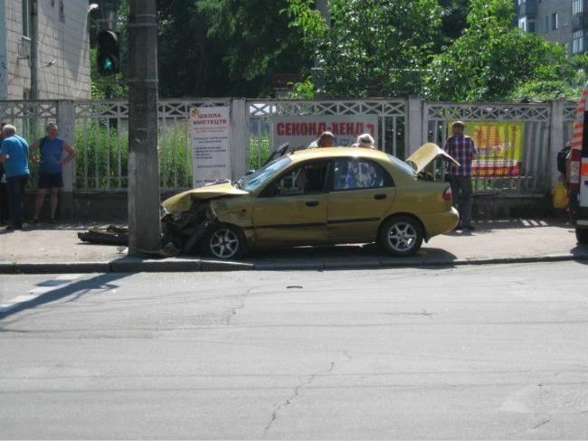 7 августа, около 10:45 возле кафе-бара «9 Легион» на перекрестке улиц Шевченко и Александра Молодчего произошла авария с участием двух машин, в результате которого автомобиль «Daewoo» врезался в столб, а синее «Жигули» тоже прилично помяло.
