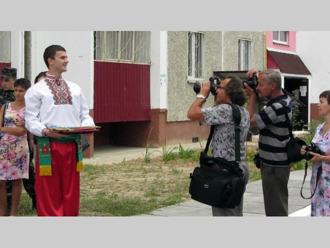 В целом, все проходило по традиционной для подобного рода мероприятий программе: выступления первых лиц области, торжественная речь от представителя Минобороны, представителя застройщика. После этого за получением документов на квартиры подходили 14 счастливых новоселов, простоявших по полтора десятка и более лет на квартирном учете в Черниговском гарнизоне.