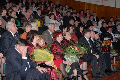В областном Дворце детей и юношества в честь Дня учителя состоялось торжественное собрание педагогов области, профсоюзных руководителей, представителей общественности — словом, всех, кто имеет отношение к педагогической работе. Большая группа представителей педагогов области получили грамоты и благодарности от областной администрации, управления образования и науки, областного профсоюзного комитета. А десять представителей педагогической плеяды области стали лауреатами областной премии имени Софии Русовой.