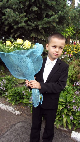 – Купил цветы, пенал, книжку, тетрадку, одежду, – перечисляет покупки Валера Набок, прижимая к себе букет роз. – Готовиться было не трудно. Мне мама помогала…