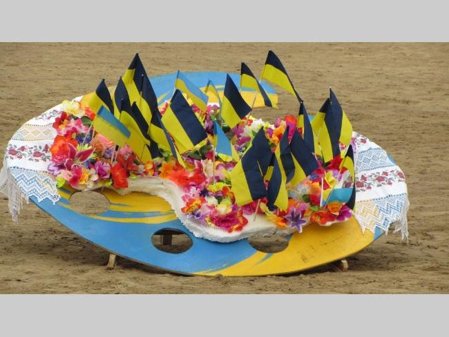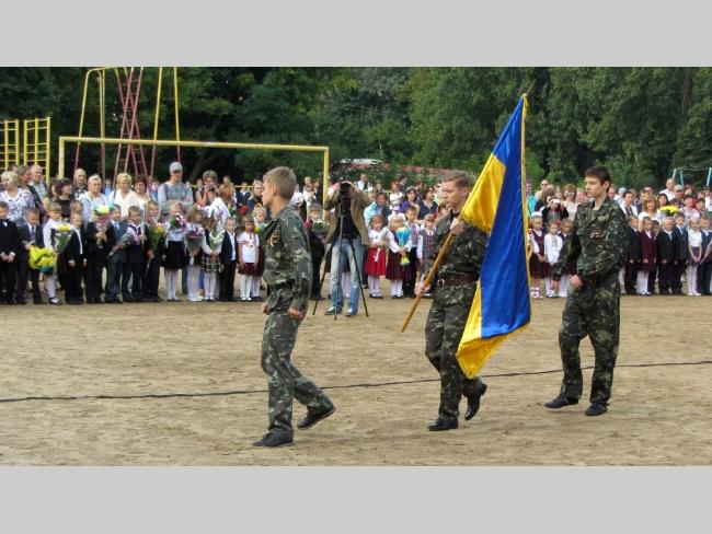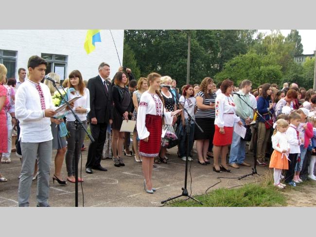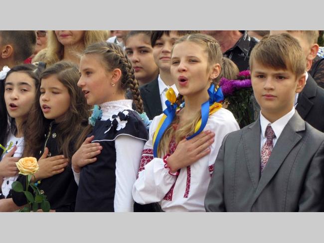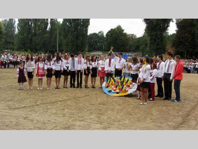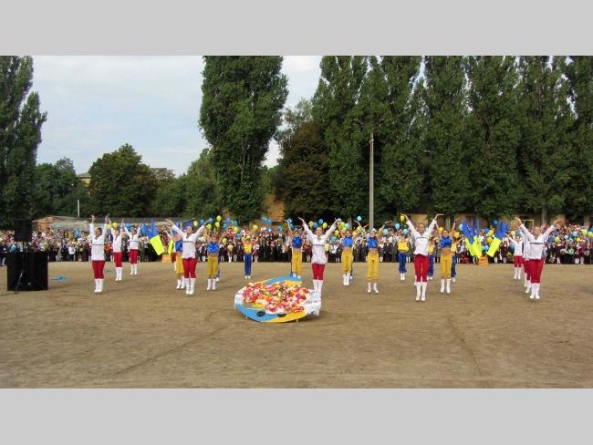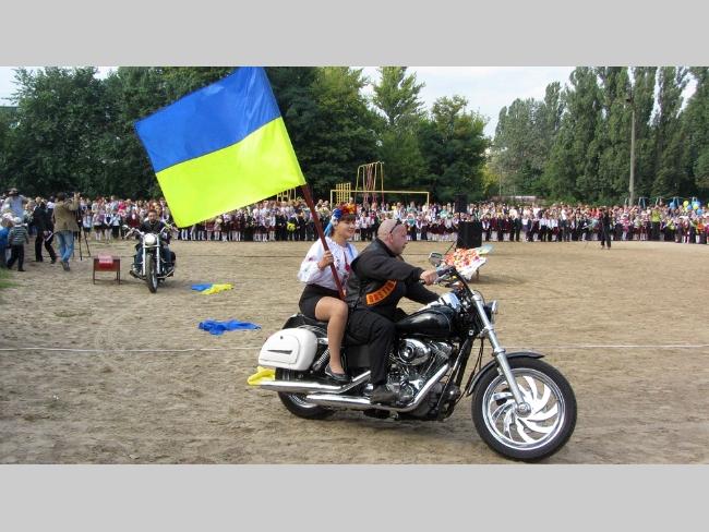 Вынос флага Украины, выступления школьных коллективов, поздравления от учителей и гостей – наверное, все это было и в других школах города. А не было у других, скорее всего, байкеров на мотоциклах с желто-голубыми знаменами. Да и «Первый звонок» в лицее №15 прозвенел по-особенному. Школьники выбегали на центр стадиона, где был установлен макет Украины, и устанавливали маленькие флажки: по одному для каждой из областей и Крыма в том числе. А потом, передавая колокольчик из рук в руки, звонили им, оповещая о начале нового учебного года.