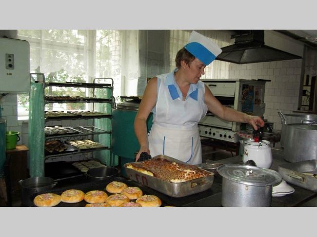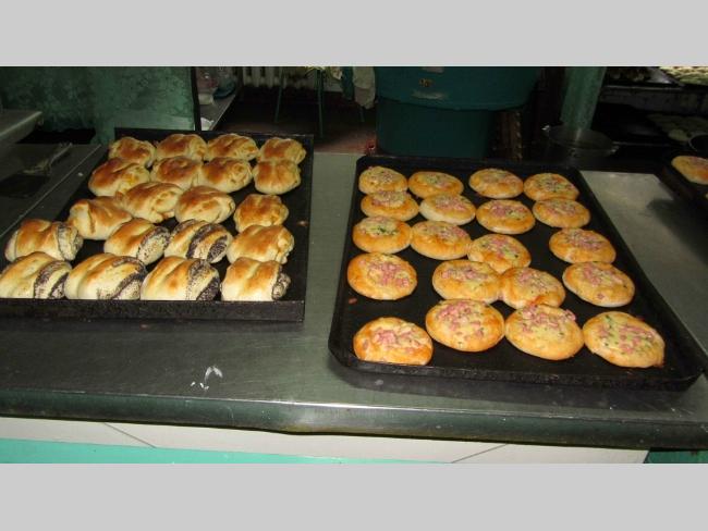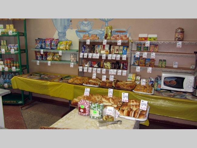 – Единовременно в столовой может принимать пищу 220 человек. Сегодня на завтрак: картофельное пюре, омлет с колбасой, помидор, твердый сыр, чай и хлеб. В среднем школьные завтраки стоят около 6 грн. Кроме этого у нас большой ассортимент выпечки, которая готовится прямо на кухне школьной столовой, – рассказывает заведующая столовой Алла Жмака. – Стоимость выпечки есть и 1,2 грн., есть и 2,2 грн. С маком – подороже, с яблоками – подешевле. Все школы города кормятся по одному утвержденному меню, так что стоимость завтраков за неделю – примерно одинаковая. Колеблется только стоимость ежедневного меню в зависимости от количества и ассортимента продуктов. Меню одинаковое как для младших, так и для старших классов.