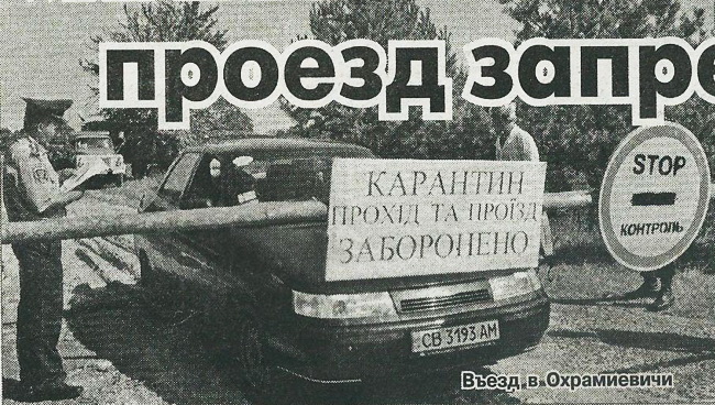 В Охрамиевичах карантин точно будет длиться 40 дней, а затем — в зависимости от ситуации. Если болезнь не выйдет за пределы села, то карантин снимут. А пока в селе дезинфицируют дворы и хлева, где были свиньи. На одной из улиц мы встретили пятеро ребят и девушек в защитных костюмах. Оказалось, что это работники ветеринарной фитосанитарной службы Новгород-Север-ского района, которых позвали на помощь на Ко-рюковщину.
