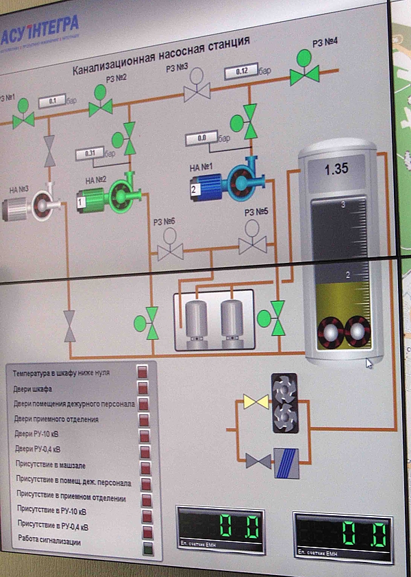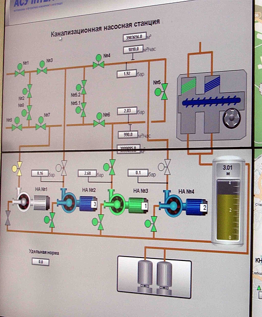 Мы поинтересовались, что обозначает «прямоугольник с шестернями», на экране монитора. Нам сказали, что это устройство в «Водоканале» называют «монстр». При его помощи перемалываются все крупные предметы, попадающие в канализацию. Размером этот «монстр» – с комнату диспетчерской. Были на схеме «монстрики» и поменьше.