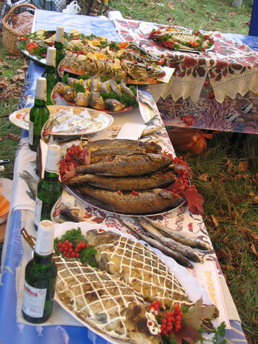 Вчера 5 октября в смт. Седнев прошел ежегодный литературно-художественный праздник «Седневская сень».В этом году городок отмечает 940-летие первого летописного упоминания. На праздник приехали художники, композиторы, кобзари Украинского сообщества, хора имени Г. Веревки. В украинских палатках-хатах были представлены старинные вещи, вышиванки, композиции из цветов, различная еда, приготовленная местными жителями и участниками праздника.
