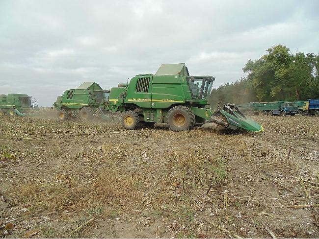 Полевые работы на землях ООО «Форсаж» ведутся почти круглый год, с трехмесячным перерывом. Сейчас идет сбор кукурузы, сои и подсолнечника, а также посевная кампания озимых. На поле – не просто трактора и комбайны, а целые мини-комплексы, оснащенные системой GPS, способные анализировать карту местности, на ходу рассчитывать норму внесения удобрений и семян. Каждый «Джон Дир» стоит около 500 тысяч долларов. Чтобы управляться с такой техникой, нужно пройти особую подготовку, и специалисты здесь высококлассные. Но и условия работы у них – позавидуешь. В кабине и кондиционер, и музыка… И зарплата в сезон – 10-12 тысяч гривен. А средняя зарплата на предприятии – три.