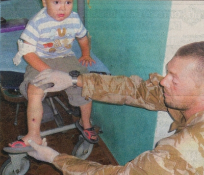 Біля маленького біженця із Луганська. У хлопчика прострелена ніжка