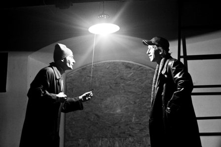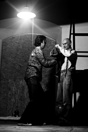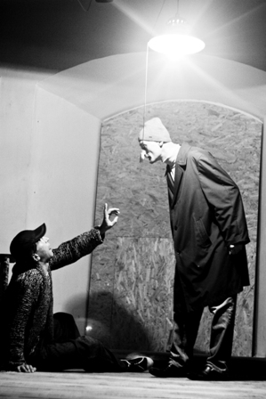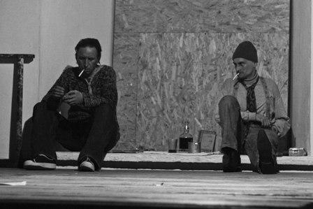 Вынужденные соседи, эмигранты, безотцовщина, это люди, живущие воспоминаниями и причудливыми надеждами. Политический эмигрант (АА - засл. Арт. Украины Алексей Быш) и «колбасный», истощенный труженик ХХ (арт. Николай Пономаренко). Каждый из них представляет собой обломок чего-то когда-то целостного.