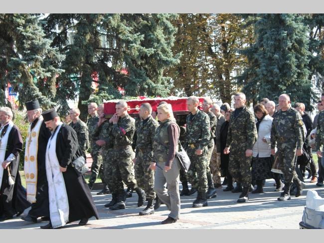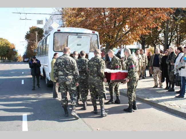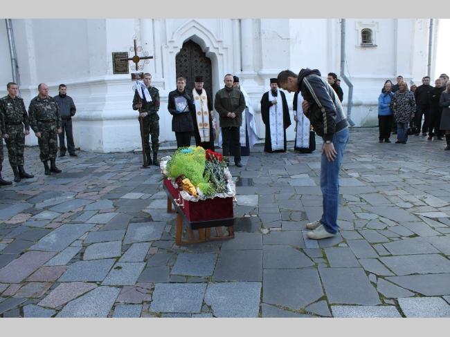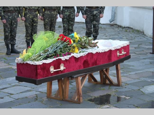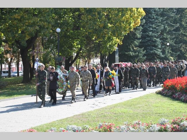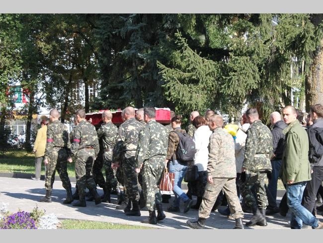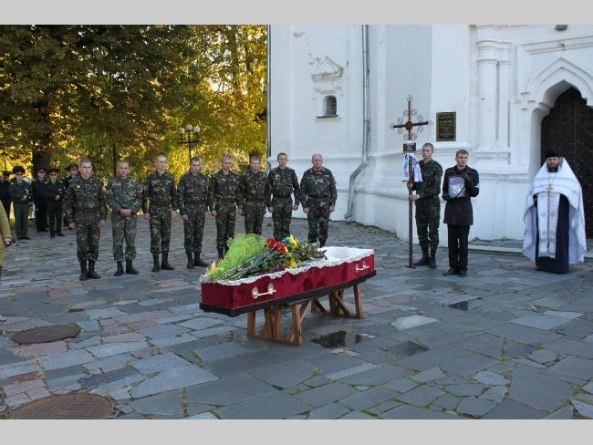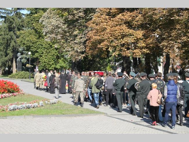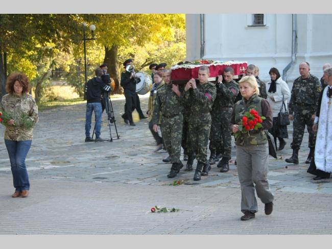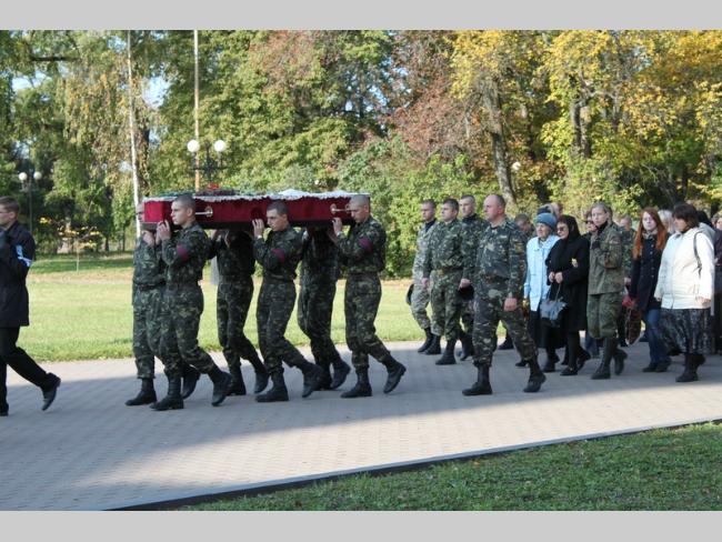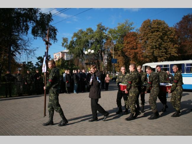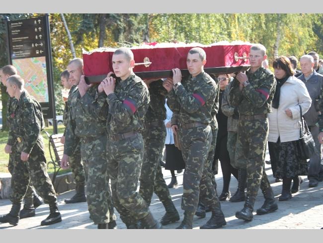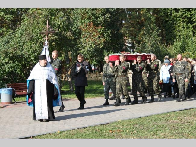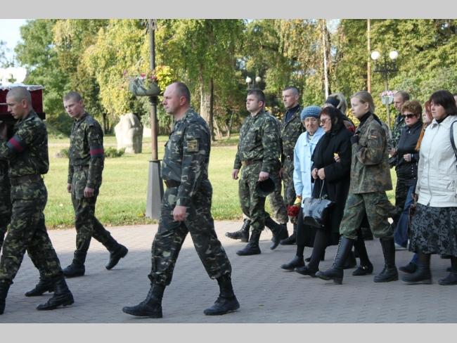 Гроб с телом Дениса торжественно пронесли по Аллее Героев. Затем тело черниговского пехотинца повезли на городское кладбище Яцево.