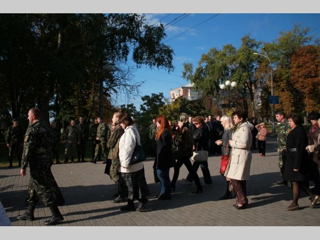 К подъезду блочной пятиэтажки, где проживала семья Чередниченко, подтягивается все больше и больше людей. В руках цветы. Крепкие и сильные мужчины не скрывают своих слез: «Такого парня не стало... Почему так, за что?!»... Временами оркестр проигрывает траурные марши, от этого становится еще горше, даже прохожие и старушки тянутся к платкам... Но заунывных истерик нет: большинство провожает Дениса в последний путь молча...