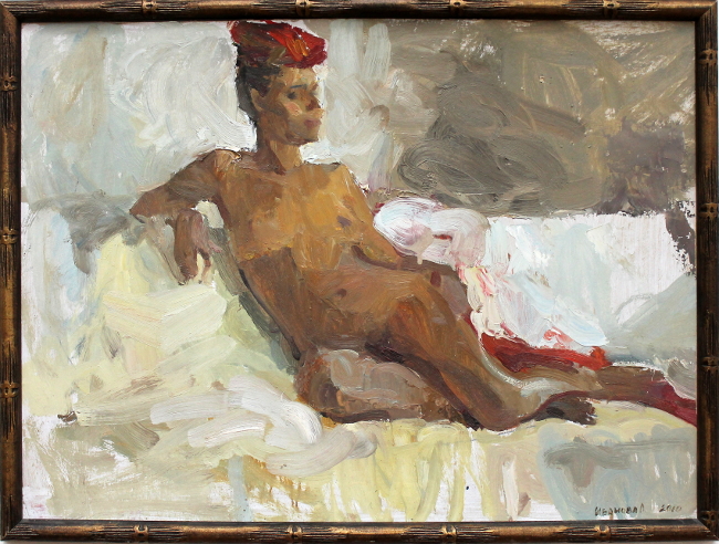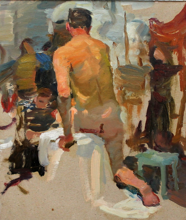 — Название этой выставки — данные из документа одной из тех самых «муз», изображенных на полотнах — «25 грн/час». Кстати, после вычета в Пенсионный фонд, остается только 20 грн. Но это не полное представление о взаимоотношениях натурщика и художника. Профессия натурщика, точнее «демонстратора пластических поз», довольно интересная, и очень отличается от стереотипных представлений, которые формируются у зрителя, смотрящего на картину.