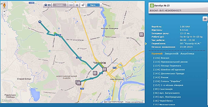 Чем хорош Интернет, так это тем, что здесь можно все быстро и всегда найти. Мы решили посмотреть, каким видели 23-й маршрут студенты Черниговского технологического университета, проводившие обсчет количества пассажиров в 2013 году.