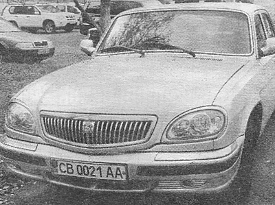 «ГАЗ-31105», 2006 року випуску, об'єм двигуна — 2,3, пробіг — 99 тисяч кілометрів, витрата бензину — 12,4 літра. Стан задовільний, складові частини у справному стані. Пошкоджені корозією передні праві двері та задні крила, дефекти на задньому бампері та передньому лівому крилі, вартість 40 тисяч 220 гривень.