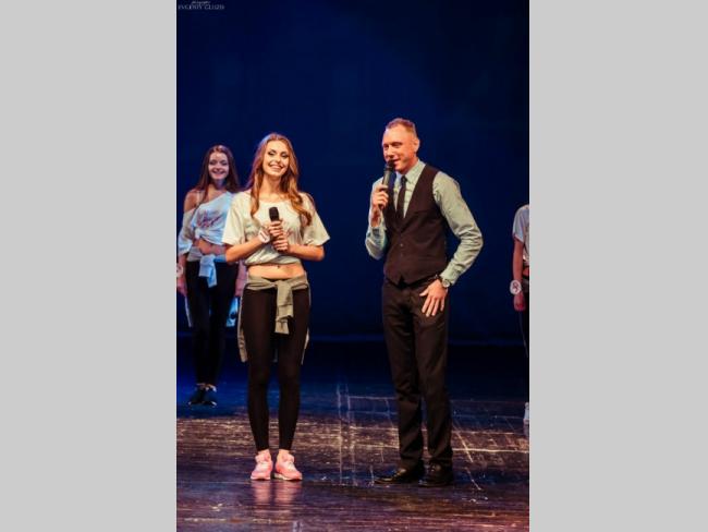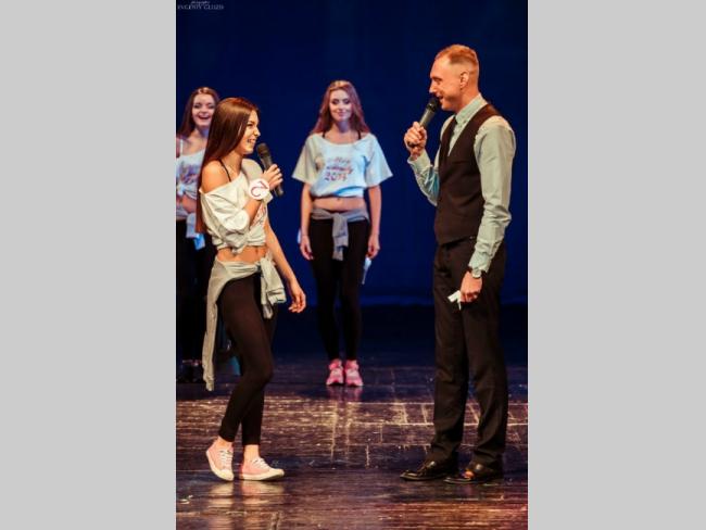2. Спортивный выход в одежде от магазина «Кроптаун», во время которого девчонки продемонстрировали свои хореографические способности, а также проявили остроумие и смекалку, отвечая на заготовленные ведущими вопросы.