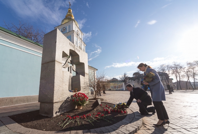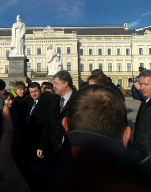 - Мы побывали в Софии Киевской и направлялись на Михайловскую площадь, — рассказывает второкурсница 19-летняя Анастасия Пономаренко. — И тут увидели, как Петр Порошенко вместе с женой кладет цветы к памятнику жертвам голодомора.