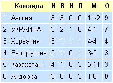 Этим же вечером у себя на поле англичане разнесли в пух и прах сборную Казахстана — 5:1, и теперь турнирная таблица нашей шестой группы выглядит следующим образом: