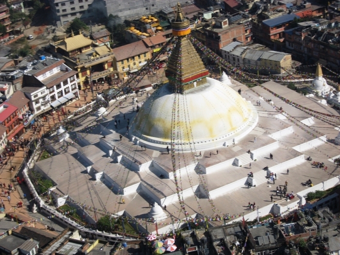 Эта фотография главной площади Катманду с буддистской ступой сделана с вертолета. Это здание очень уважают и чтят во всем мире, и чтобы его увидеть – приезжают миллионы туристов со всего мира. В их числе я, например, видел актера Ричарда Гира. Но возвращаясь к фотографии. Ее подарил мне один мой друг – летчик. Интересно, что практически все пилоты в Непале – выходцы из стран бывшего СССР. Моему приятелю под 60, он немолод. И как-то он признался, что у себя дома он бы не прошел медкомиссию уже лет 20, уже и гипертония у него, зрение падает, а в Непале ничего, летает. И зарплата у него неплохая – 2 тысячи долларов.