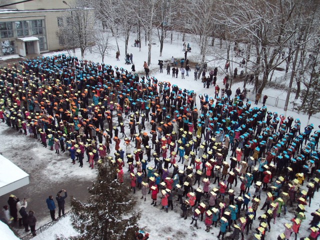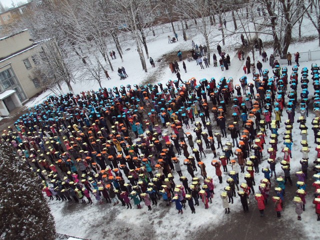 Наша школа уже проводила очень много разных массовых мероприятий, но данный флешмоб является самым масштабным по количеству задействованных участников. Я очень надеюсь, что всей Украине понравится наша идея. Мы хотим создать самый большой живой флаг Украины и тем самым установить Национальный рекорд Украины. Идея сделать такой флешмоб принадлежит ученическому совету 29-й школы. Мы решили сделать какое-то интересное и новое мероприятие, которое бы понравилось как самим ученикам, так и взрослым людям. И в качестве такого мероприятия выбрали флешмоб, который решили организовать ко Дню соборности Украины. Мы посчитали, что нужно обязательно как-то по-особому отметить этот праздник. И только потом было принято решение сделать не просто флешмоб, а и установить Национальный рекорд Украины. К счастью, руководство школы очень позитивно отреагировало на такую идею и помогло организовать данное мероприятие.