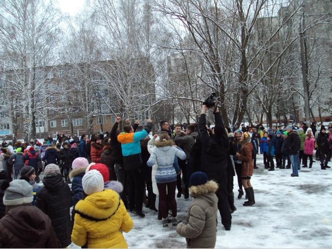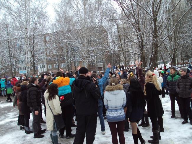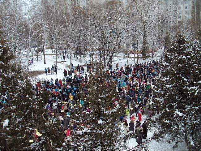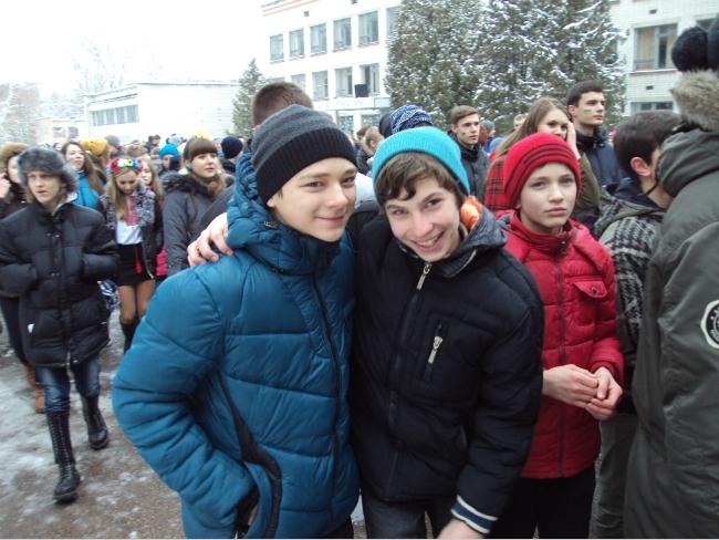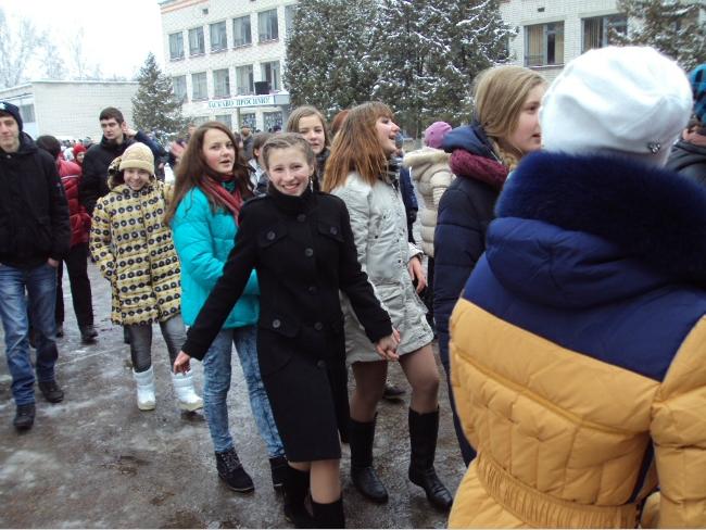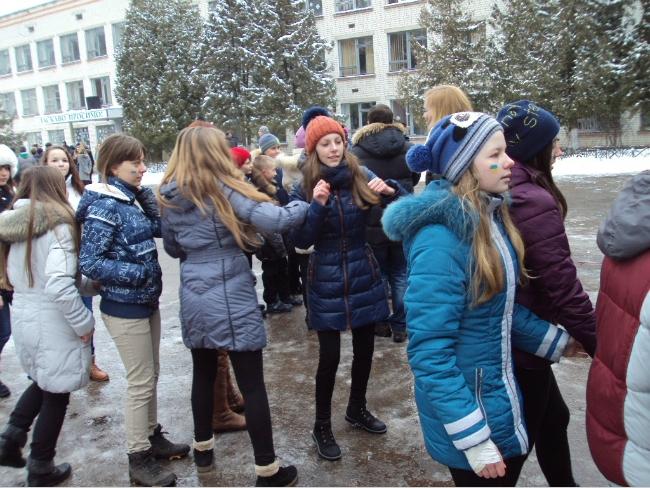 Лера (11-Б), Люба (11-А), Юля (11-Б), школьницы, участницы флешмоба