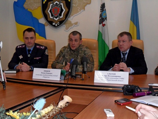 Руководство батальона «Чернигов», несмотря на то, что часто упоминается в СМИ, редко балует журналистов, что называется, доступом к телу. Тем любопытнее было послушать комбата «Чернигова» Романа Пыцькива и командира штаба батальона Сергея Любенко о буднях подразделения на Востоке. К пресс-конференции также подключился и заместитель начальника областного УВД Эдуард Алехин. Втроем они отвечали на вопросы журналистов.