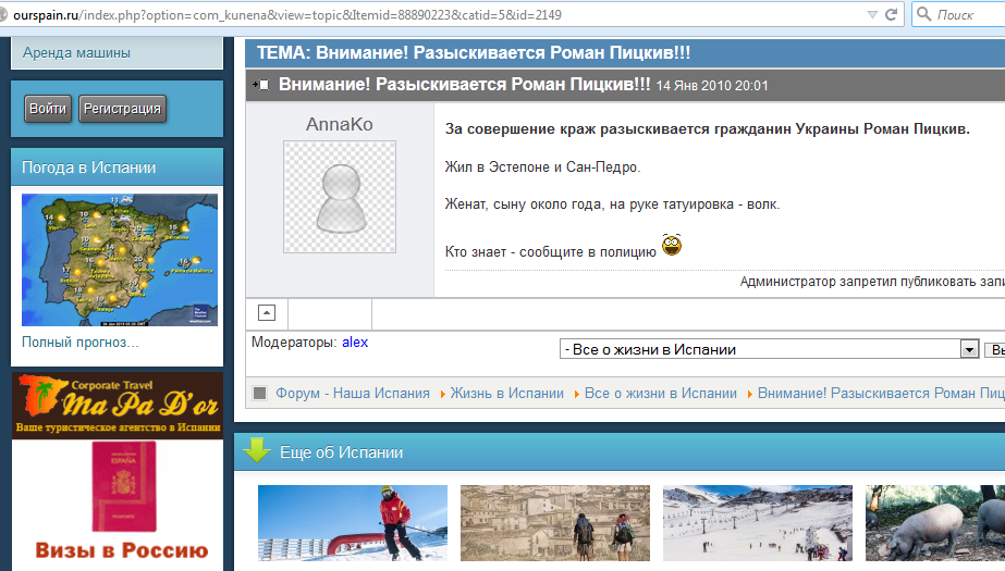 Комбат «Чернигова» Роман Пыцькив прокомментировал нам информацию, регулярно появляющуюся в сети – о том, что якобы его еще с 2010-го года разыскивают за серию краж, совершенных в нескольких провинциях Испании.