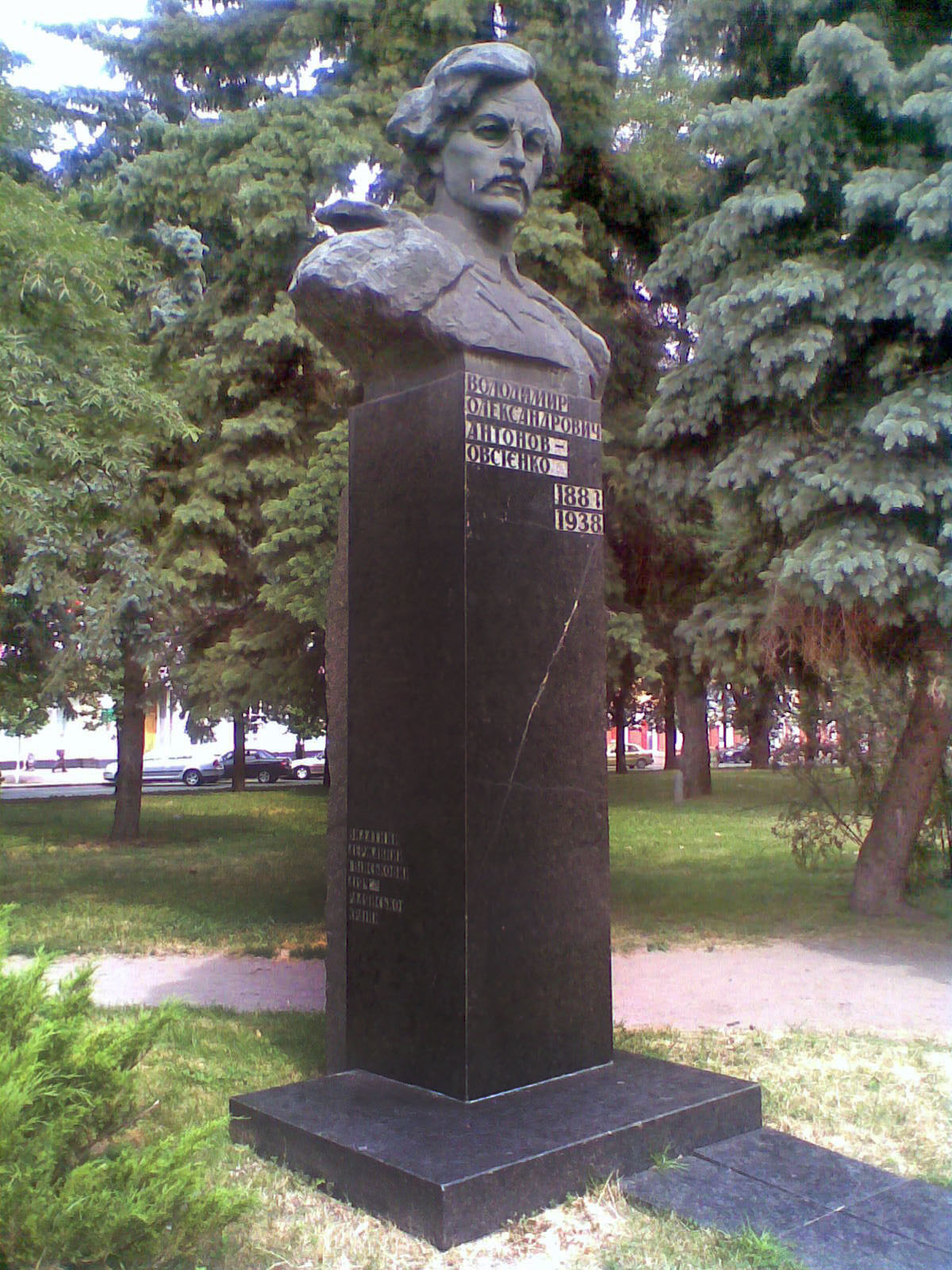 – Антонову-Овсеенко Владимиру Александровичу (1883-1938) революционеру, меньшевику, расстрелянному как шпион-троцкист и реабилитированному в 1956 году.