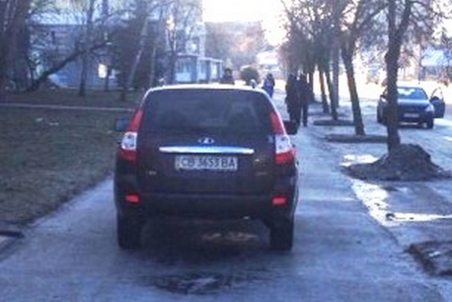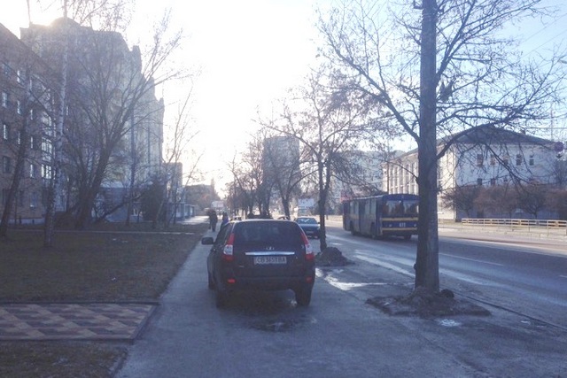 1 февраля, время 14.15, Чернигов, проспект Победы, 119. Судя по всему, клиент парикмахерской приехал постричься и припарковался посреди тротуара.