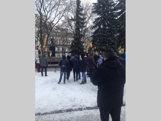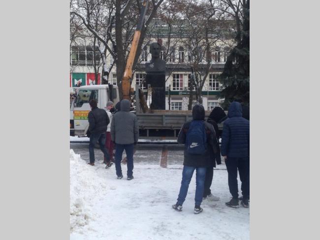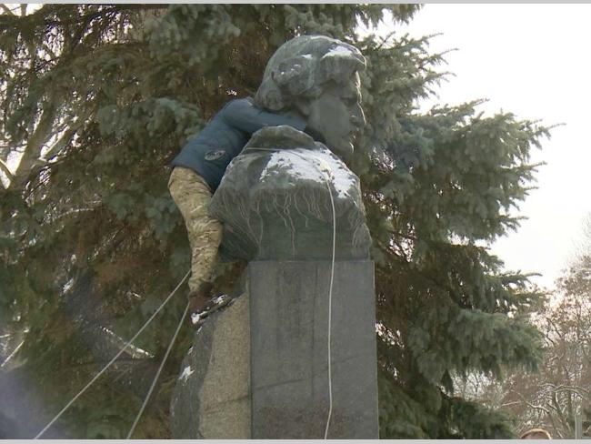 Сегодня утром в редакцию Gorod.cn.ua поступило сообщение от очевидцев работников офиса, что находится напротив Аллеи Героев в здании бывшего «Янтаря» о том, что в центре города начался процесс сноса памятников. Первый уже упал – сообщили нам.