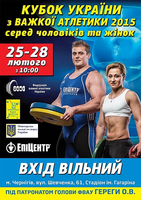 С 25 по 28 февраля в Чернигове состоится Кубок Украины по тяжелой атлетике 2015 под патронатом главы Федерации тяжелой атлетики Украины Александра Гереги.