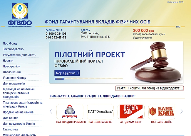 Информация о времени и порядке выплат публикуется оперативно и по мере поступления от неплатежеспособного банка на странице Фонда в сети Интернет по адресу www.fg.gov.ua, и на сайте и в главном офисе банка, в котором введена временная администрация.