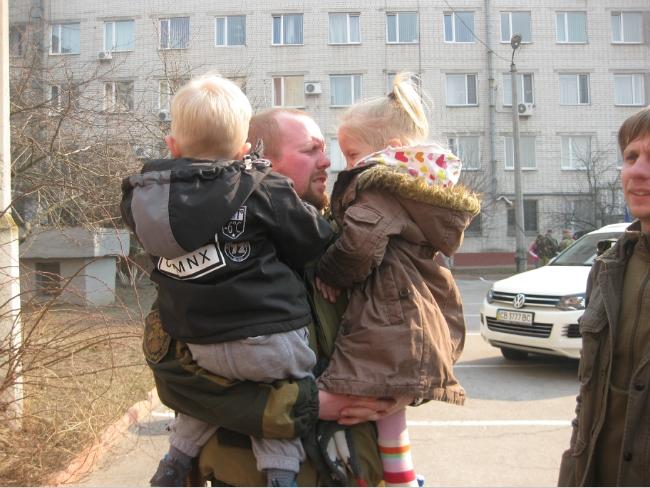 – Мамы и жены всегда плачут. Но мы обязательно вернемся. Мы там – ради вас, – успокаивает провожающих родственников заместитель командира батальона «Чернигов» Виталий Костюченко. – Настроение у бойцов – боевое! Людей в батальоне достаточно для выполнения поставленных задач. Возраст – от 18 до 40 лет. Батальон обеспечен обмундированием, экипирован средствами защиты и необходимым вооружением. Кто говорит, что на войне не страшно, тот ничего не знает о войне. Страх присущ любому человеку с нормальной психикой. Но есть ответственность, есть долг. И мы готовы его выполнить с честью! Меня лично сегодня пришла провести жена и дочечка Мирослава. Ей – пять. Она меня всегда ждет.